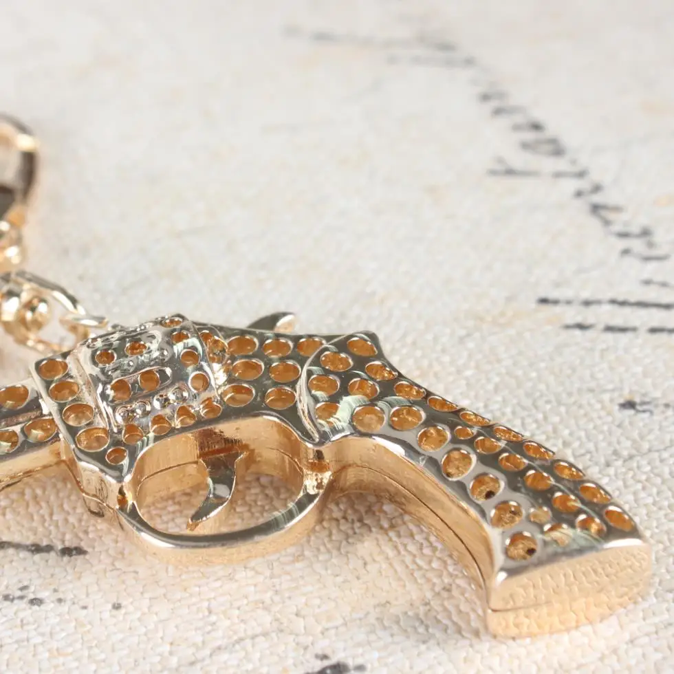- Hip Hop: The love for flamboyant accessories—like chain-laden key rings, large pendants, or gem-encrusted surfaces—parallels the rhinestone-laden pistol motif. Fans of rap or street fashion might see it as a low-key approach to “bling,” perfect for keys or bag attachments.