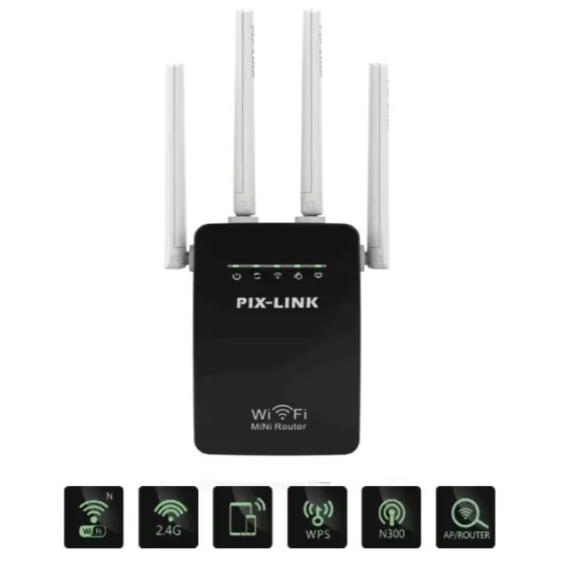 SEO Keywords: Pix Link WiFi Repeater, WiFi range extender, signal booster, wireless repeater, home networking solution, eliminate WiFi dead zones, extend WiFi coverage, improve internet connectivity.