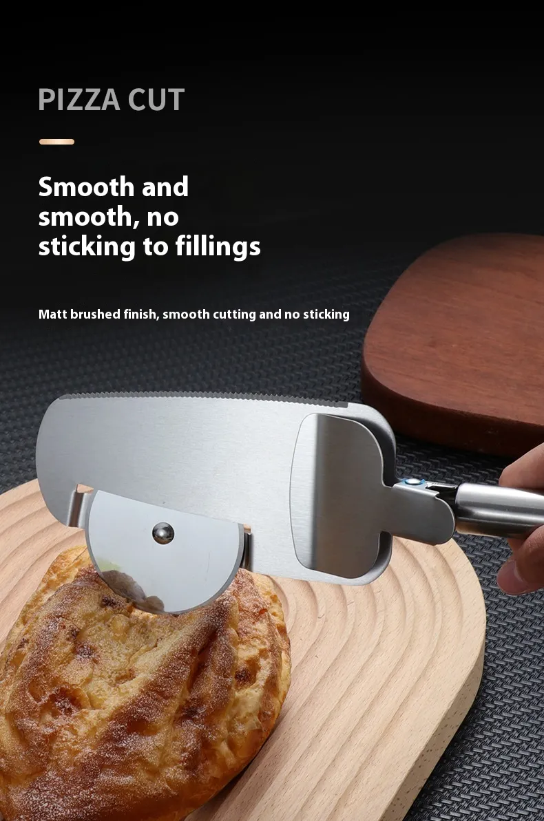 [Innovative 3-in-1 Design] Featuring a 3-in-1 design, this cutter includes a sharp wheel for slicing, a shovel for serving, and a clamp to secure the pizza, making your family gatherings more enjoyable.