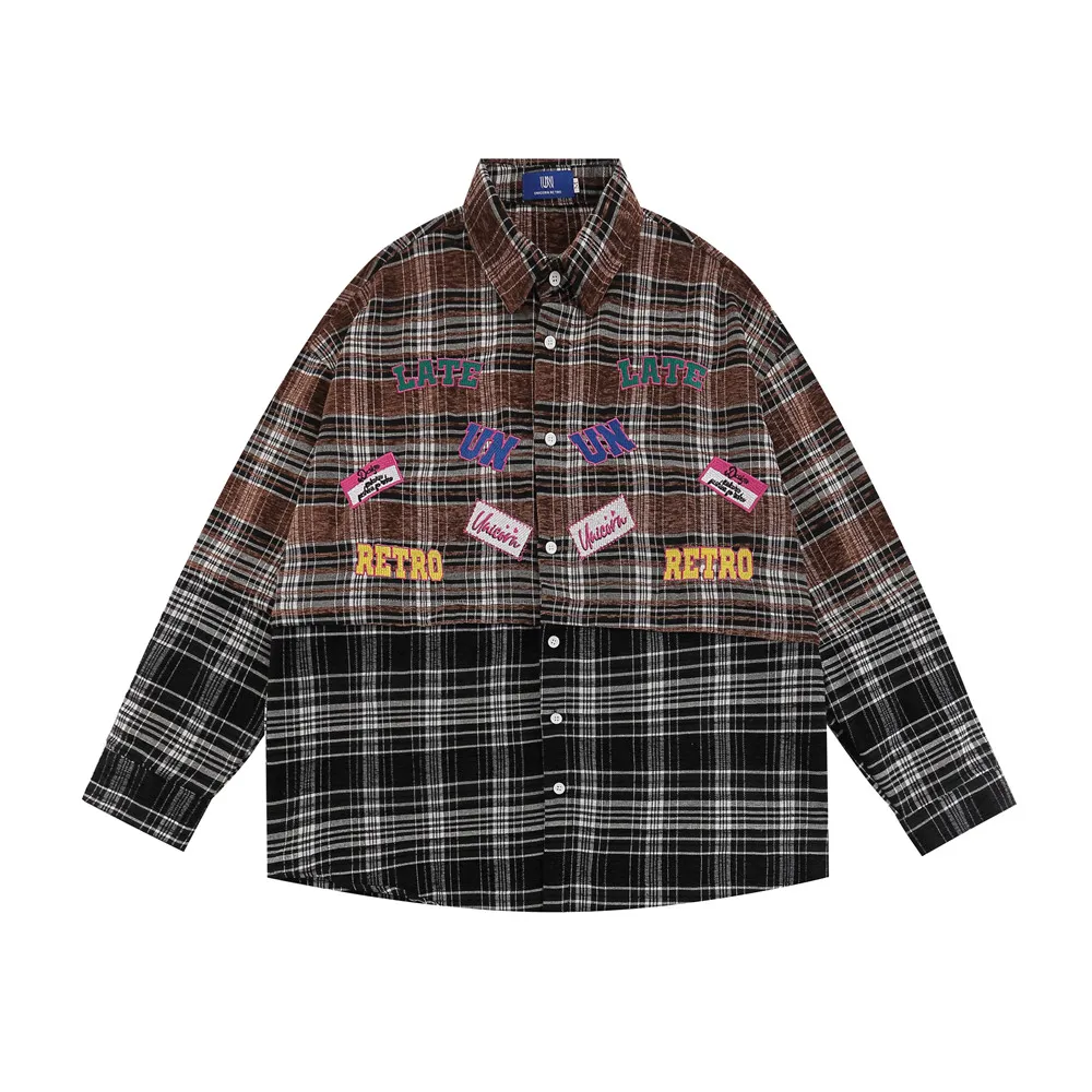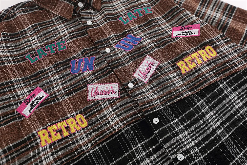 Plaid Coat Women's Spring And Autumn High Street Fashionable Design Stitching Embroidered Letter Long Sleeve Shirt