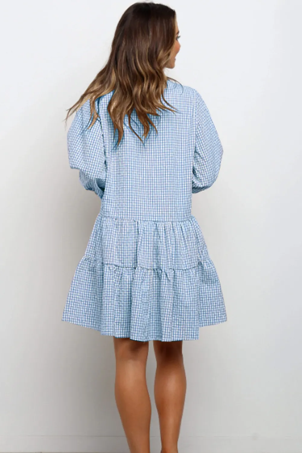 Crafted from high-quality materials, the dress features a soft and breathable fabric that ensures comfort throughout the day. The plaid print adds a timeless touch, while the ruffle details at the hem and sleeves introduce a playful and feminine flair. The V-neckline elongates the neck, creating a flattering silhouette suitable for various body types.