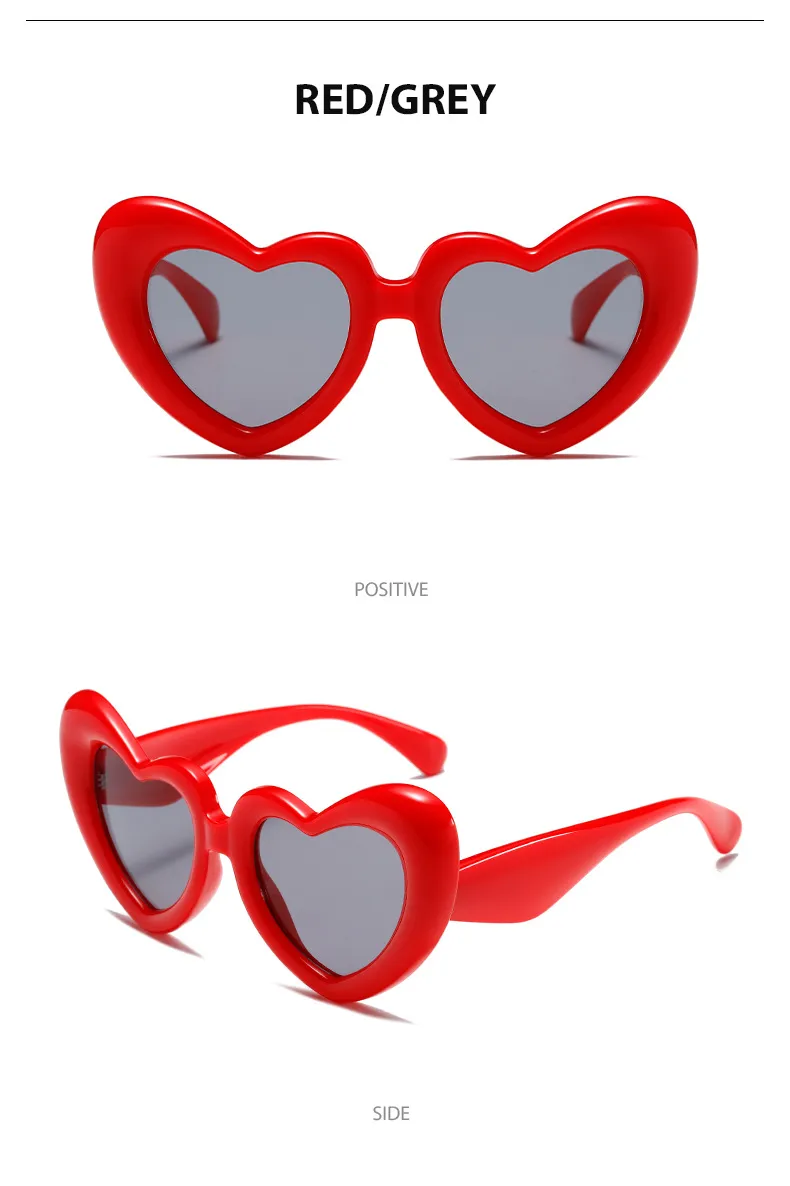 These plastic heart sunglasses are both stylish and practical, offering durability and comfort for all-day wear.