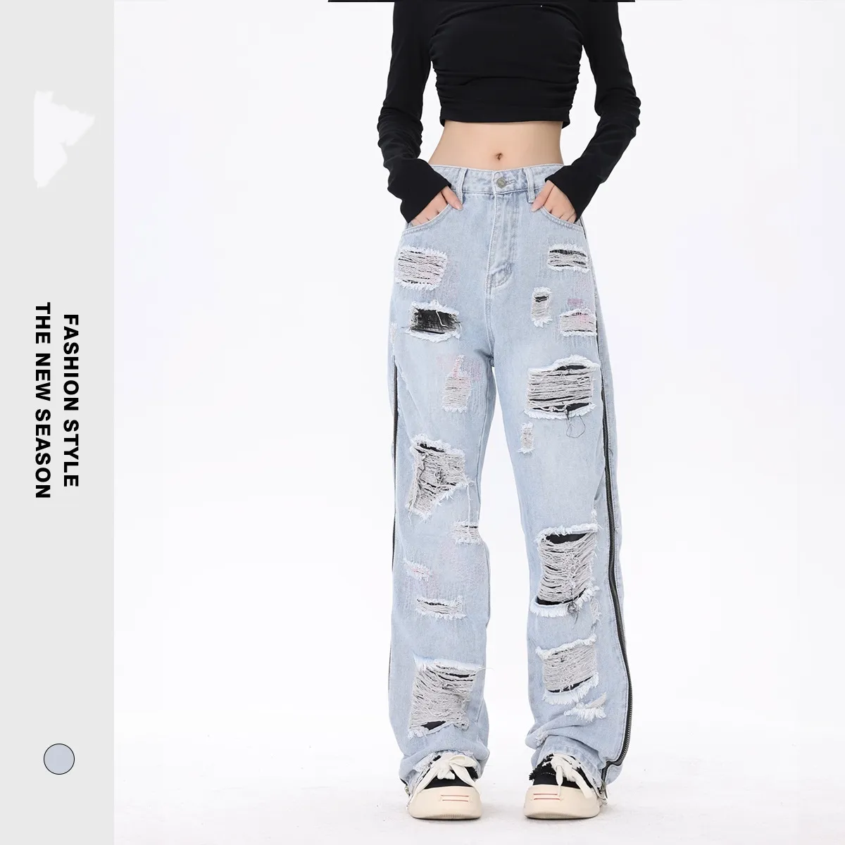 In conclusion, plus-size distressed ripped jeans are a trendy and versatile addition to any wardrobe, offering a chic, edgy look that’s designed to flatter curves. With their stretch denim, durable construction, and stylish distressed details, these jeans provide the perfect balance of comfort, durability, and fashion-forward design. Whether you prefer a high-waisted or mid-rise fit, skinny or boyfriend cut, these jeans will easily become a wardrobe favorite that pairs well with many outfits.