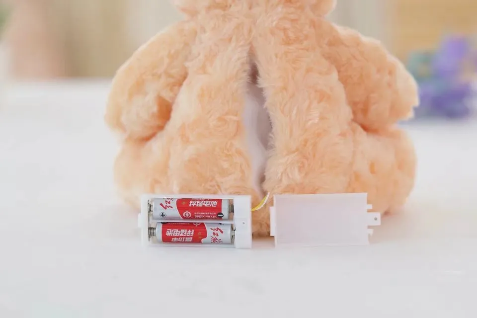 No need to worry about plugging in your teddy bear or keeping it near an outlet. The Plush Toy Teddy Bear runs on batteries, offering the convenience of portability. You can place it anywhere in your child’s room, on the bedside table, or even in the living room without being constrained by cords or electrical outlets.
