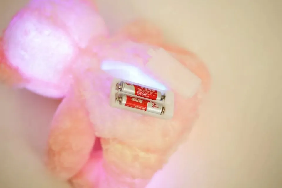 A1: The glowing feature is powered by a small LED light system inside the bear. The light is battery-operated, and the soft glow it emits is