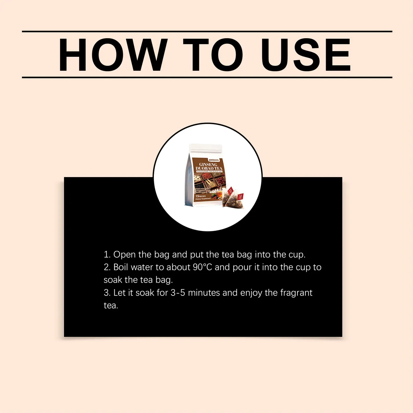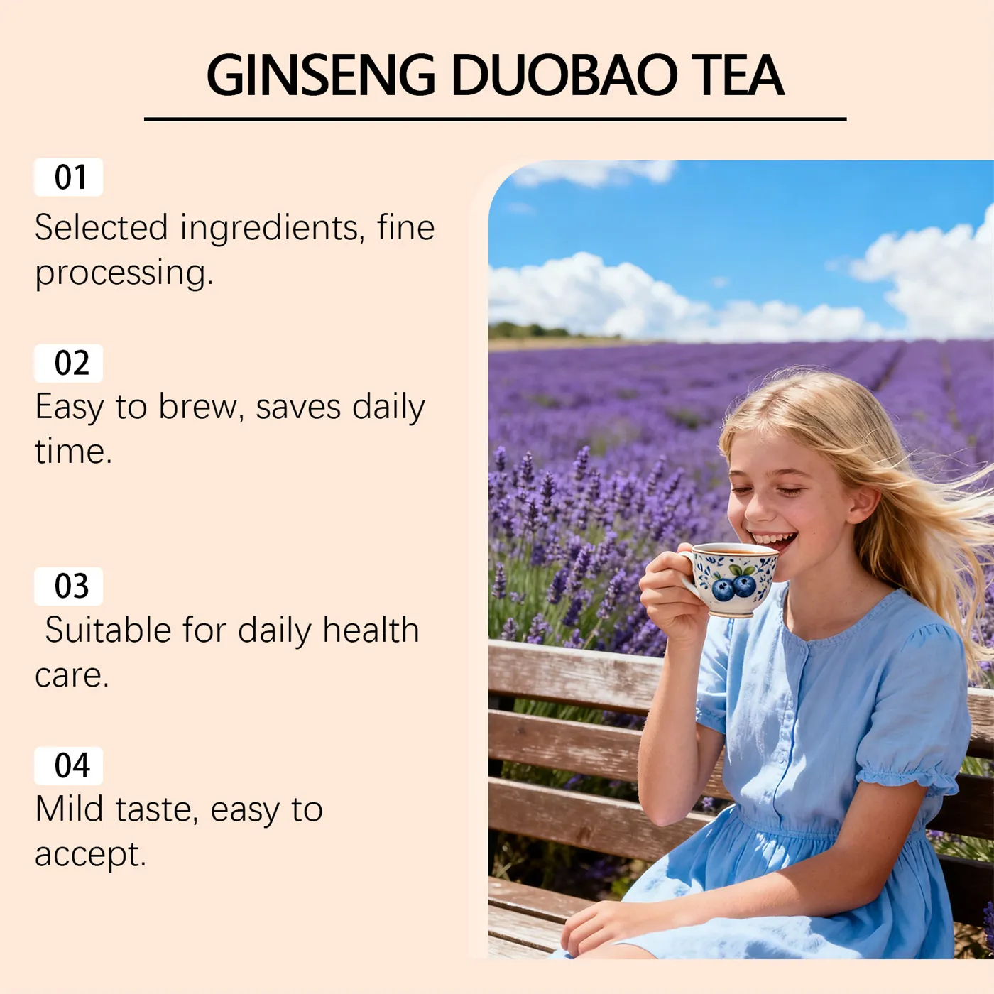 Each bag of Ginseng Duobao Tea is packed with a balanced mix of herbs, designed to work together to support natural energy levels, improve focus, and enhance your immune system. The carefully selected ingredients, including goji berries and licorice, contribute to overall wellness while aiding digestion and metabolism.