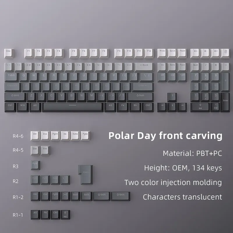 Constructed from durable materials, this machinery key cap provides both aesthetic appeal and functionality. The high-quality material ensures that the keycaps are resistant to wear and fading, offering long-lasting durability. Perfect for gamers, typists, and anyone looking to customize their keyboard, this keycap not only enhances the look of your setup but also provides a comfortable, responsive typing experience. With its unique polar day gradient effect, this keycap brings both style and performance to your keyboard.