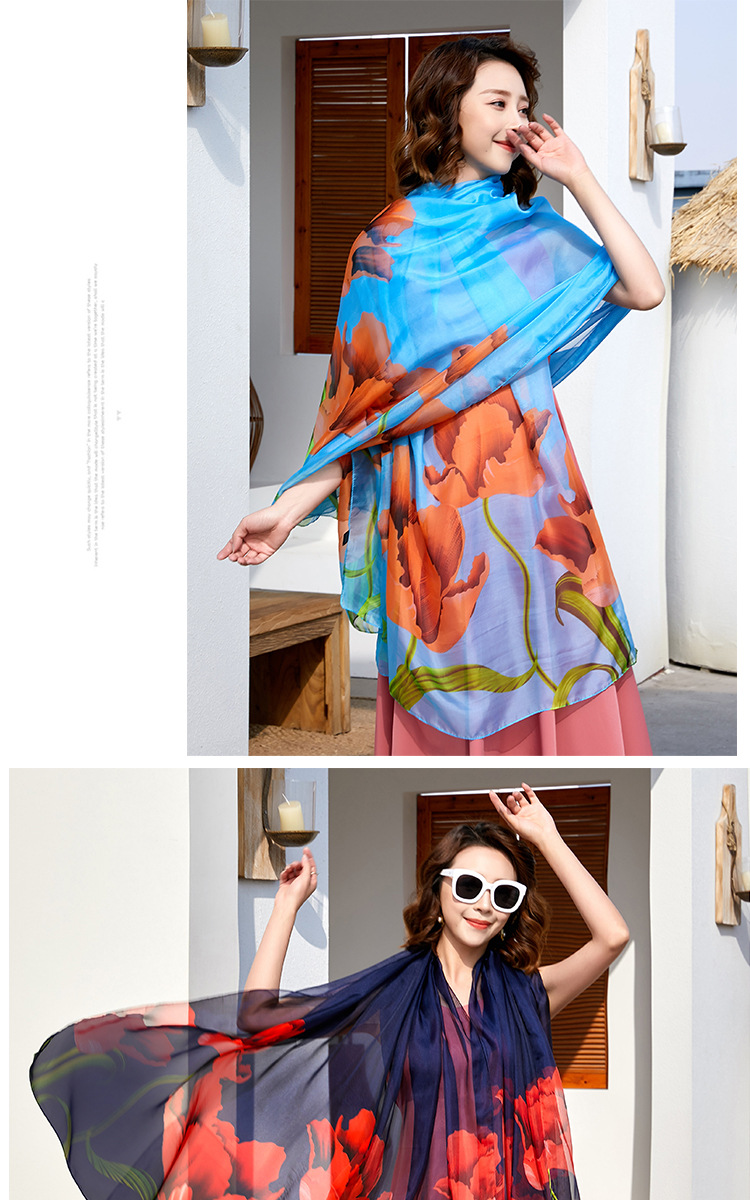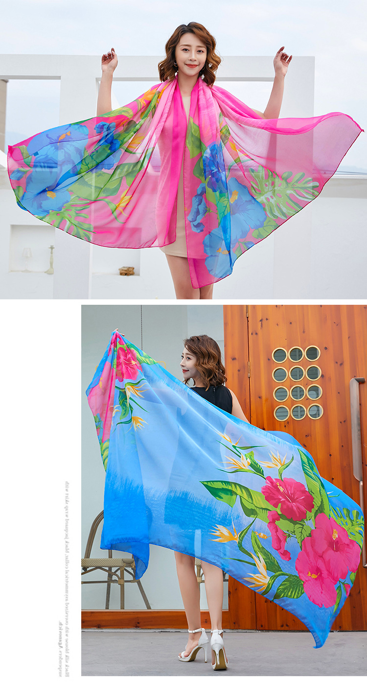 Polyester Women's Summer Silk Scarf Oversized Sunscreen Lightweight Beach Towel