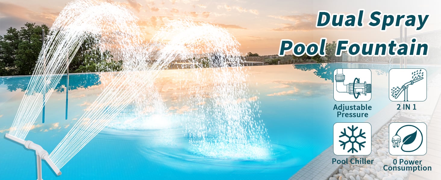 Creating a wide and high waterfall spray that cools down your pool water temperature by 6-10 degrees and creates a soothing sound to help you relax and release stress.