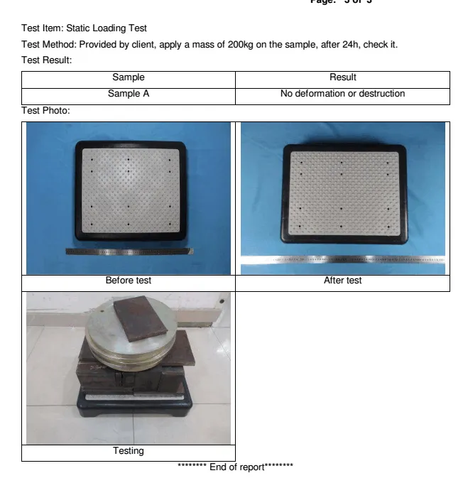 Inspection results after 200kg load-bearing for 24 hours: no deformation, no damage.
