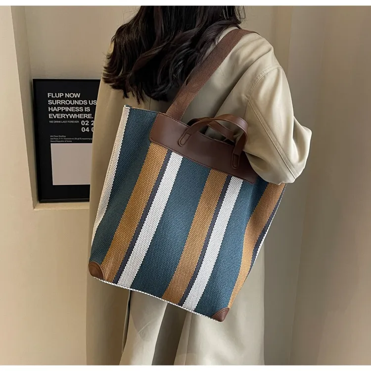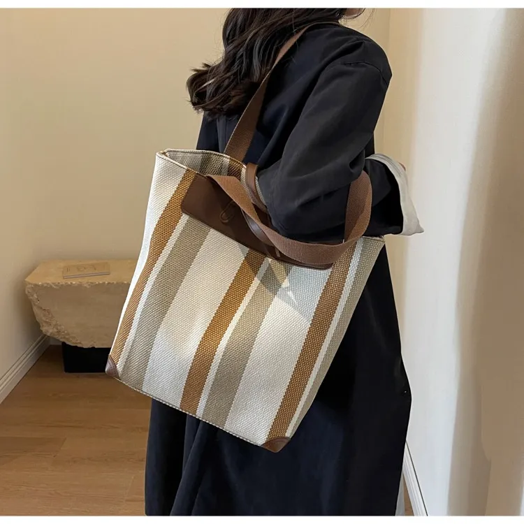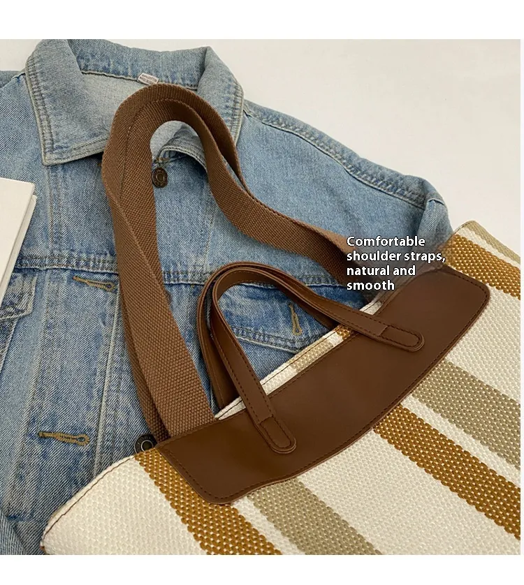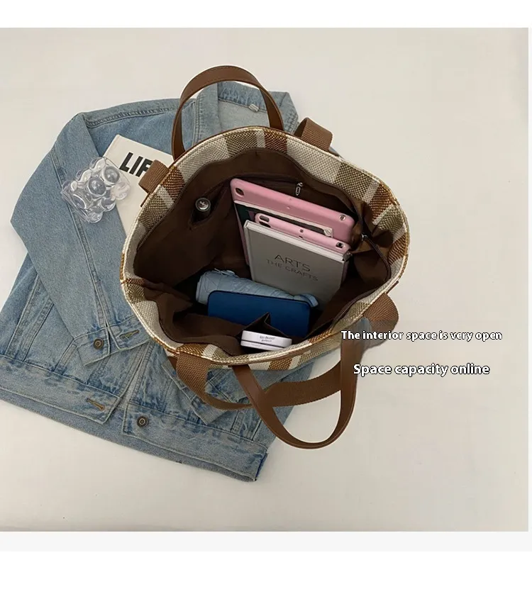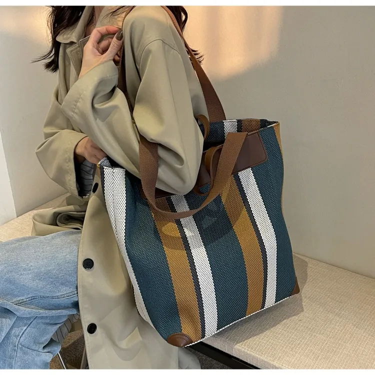 The Popular Bag Large Capacity New Fashion One-Shoulder Canvas Commuter High-Sense Bag is designed for the modern woman who values both style and practicality. Whether you're heading to work, running errands, or enjoying a day out, this canvas bag is the perfect companion. Its large capacity, high-sense design, and one-shoulder style make it an essential item for everyday use.
