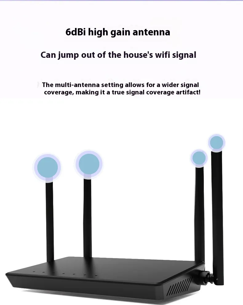 Equipped with powerful built-in antennas, this router ensures wide-area signal distribution, providing smooth internet connectivity across multiple rooms.
