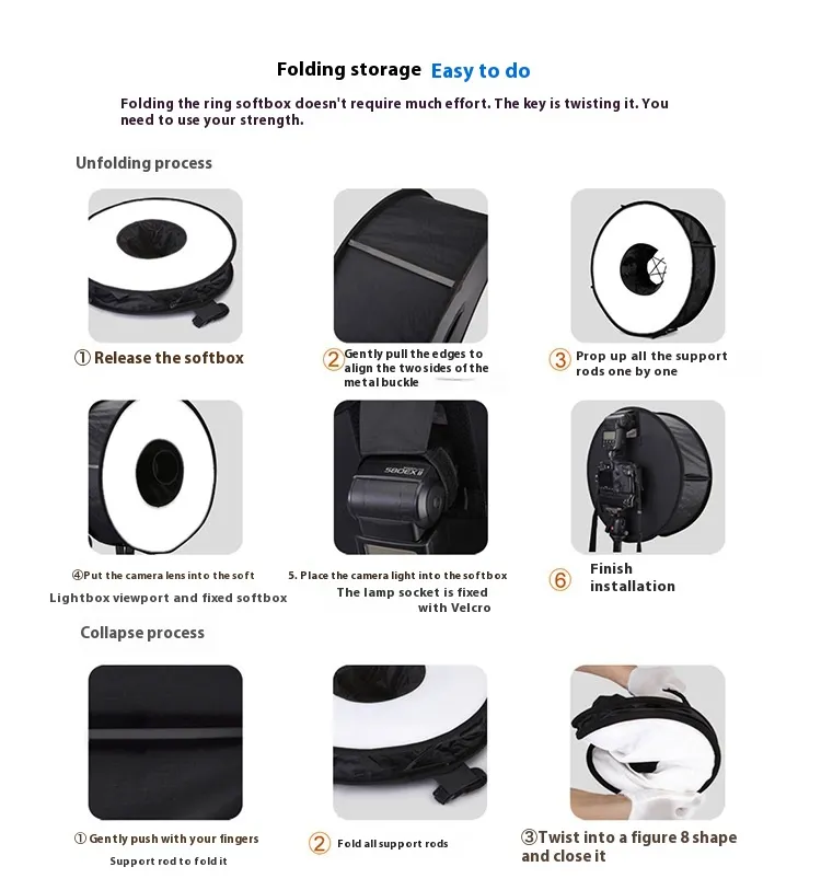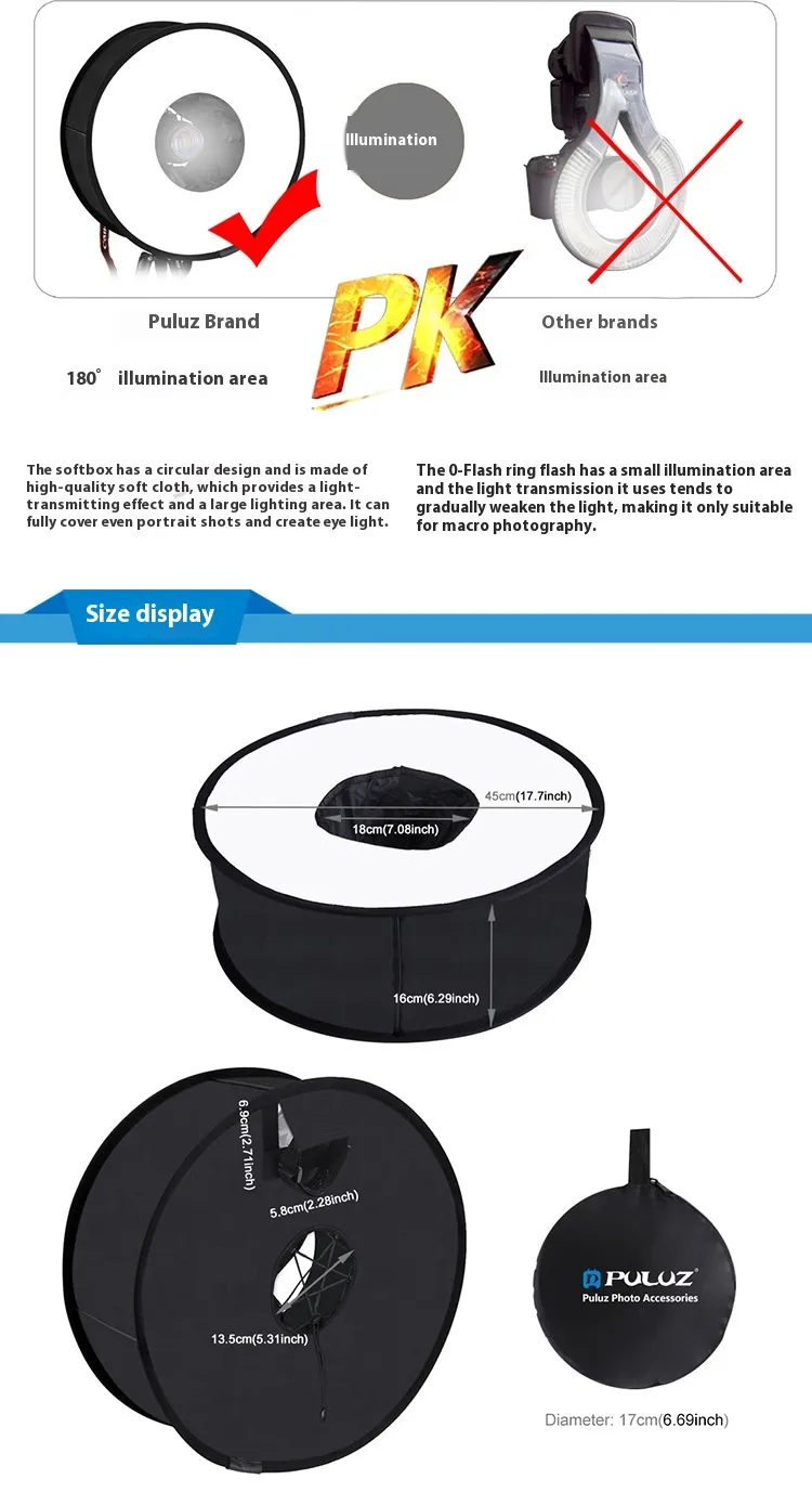 Portable 45cm Ring Universal Folding Softbox – Compact and Versatile Lighting Solution