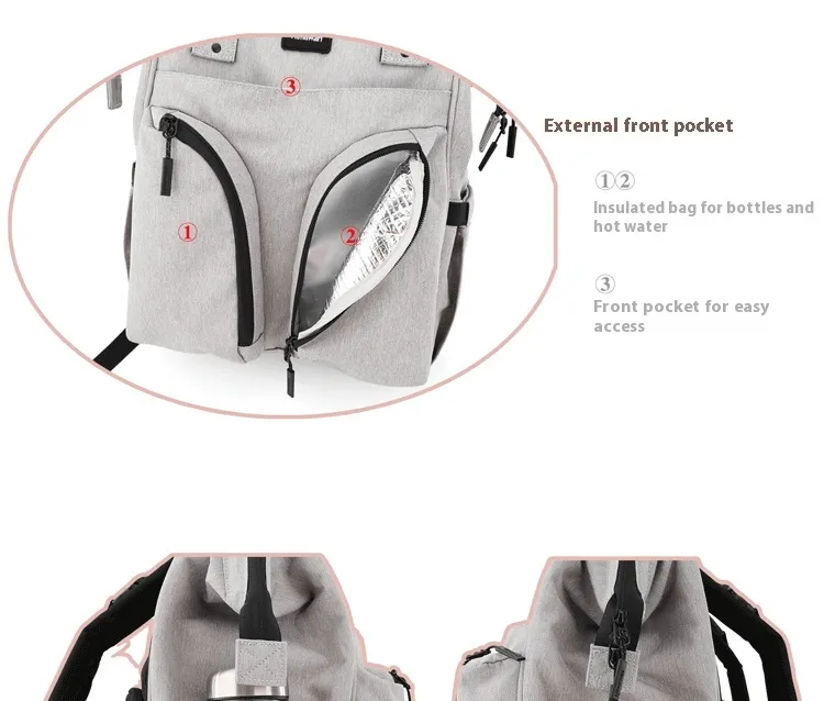 Multiple Compartments: Equipped with various compartments, including a main section, front zippered pocket, side mesh