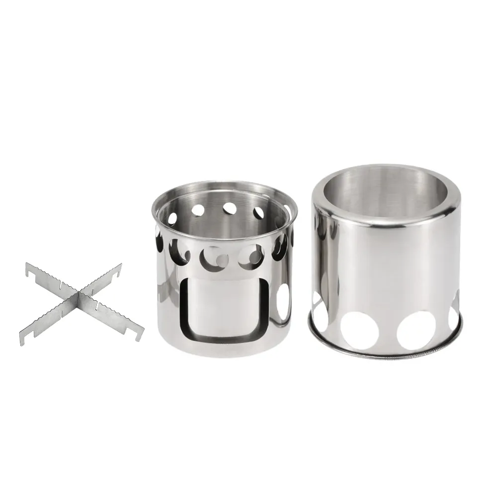Portable Camping Stove Combo Wood Burning Stainless Steel Stove And Cooking Pot Set For Outdoor Backpacking Fishing Hiking