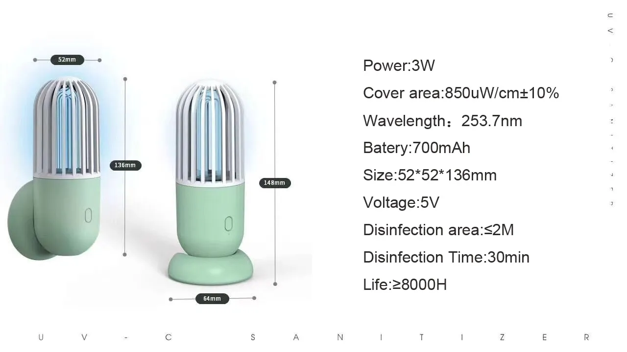 Stay protected wherever you go with the Portable Capsule Ultraviolet Disinfection Lamp, your compact and powerful solution for on-the-go sterilisation. Using UV-C light technology, this device effectively eliminates up to 99.9% of bacteria, viruses, and other harmful microbes from surfaces in seconds—without any chemicals or residue.