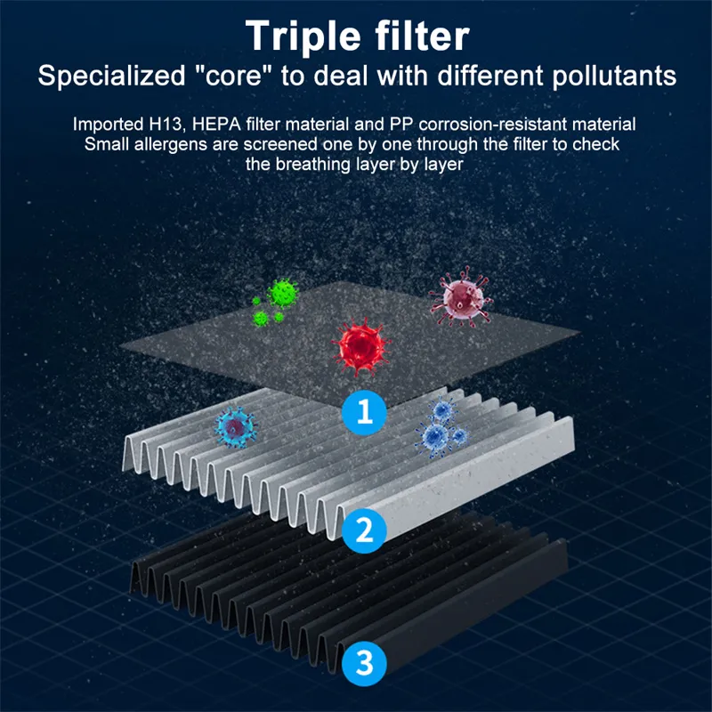 Powerful air filter, cleans your personal air, away from 99.98% dust, pollen, pet dander, smoke and odor, help to alleviate allergies, and is the ideal choice for any desktop, table, car, product purification effect up to 200m ³/ H particulate matter Cadr.