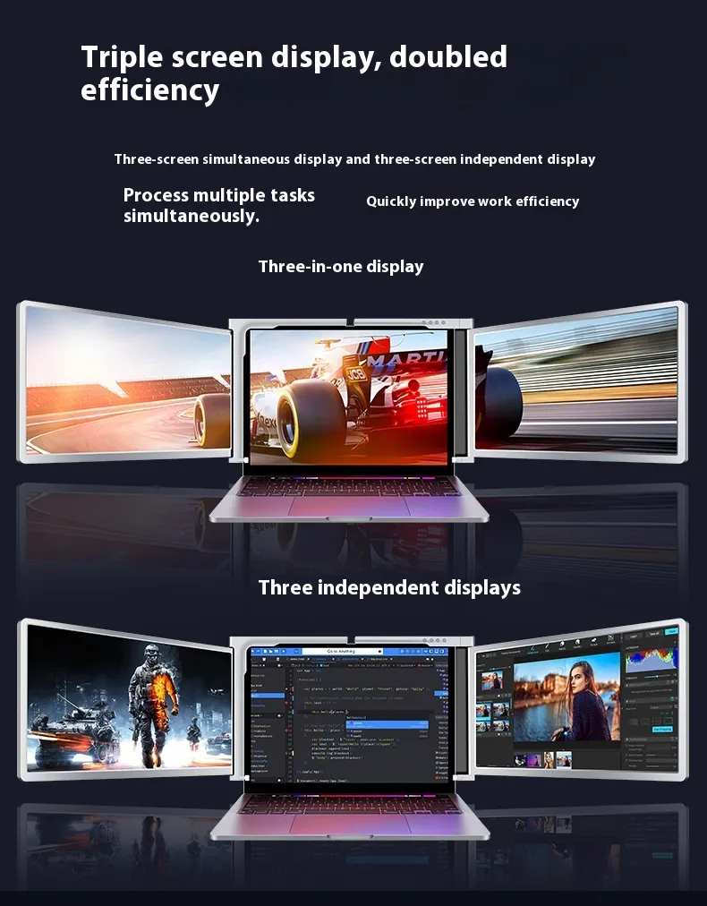Whether you’re coding, editing, gaming, or watching videos, the Portable Display expands your digital workspace for ultimate convenience. The dual-screen and three-screen models offer seamless screen extension and mirroring capabilities, enhancing your workflow and entertainment experience.