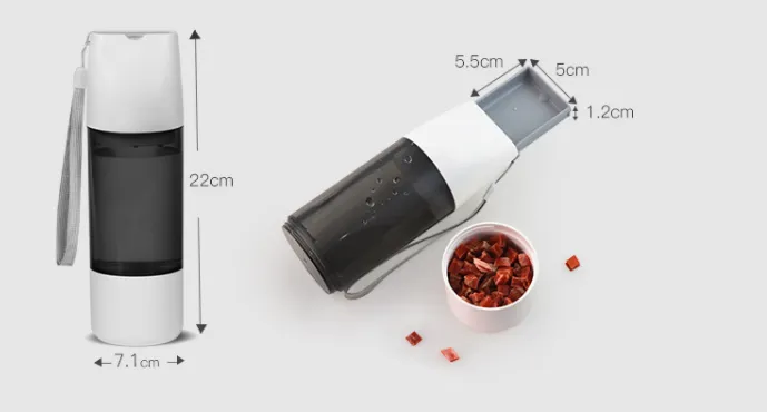 The 350ml water bottle provides ample water for your dog, while the food container allows you to carry kibble or treats for a quick snack. The attached feeder bowl makes it easy for your pet to drink or eat directly from the bottle, eliminating the need for extra bowls. The one-hand operation button lets you control the water flow, so you can easily dispense water without any mess or spillage.