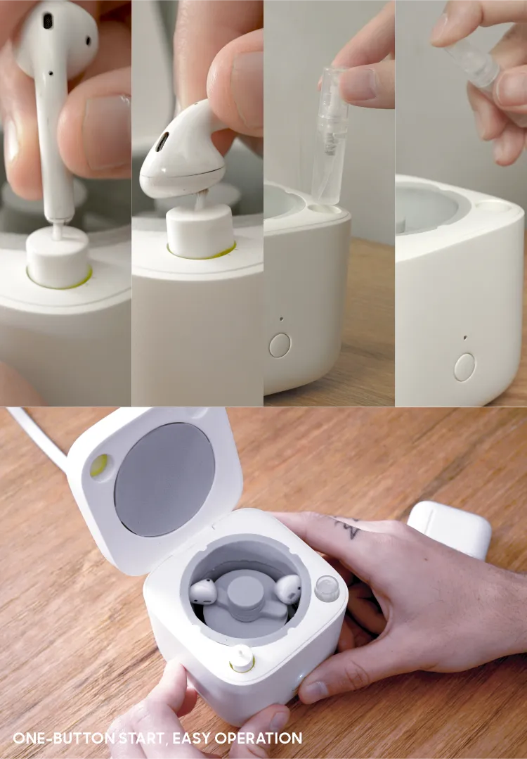 User-Friendly Design: The cleaning process is quick and straightforward. Simply place your headphones into the cleaning