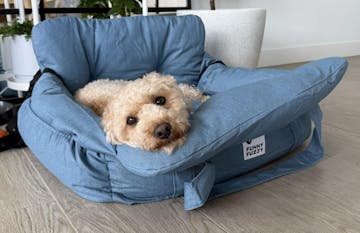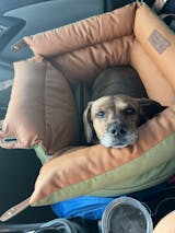 back seats, knowing he is enjoying the ride😊For reference: this is the two seat portable bed, Basil is a Toy Cavoodle that weights about