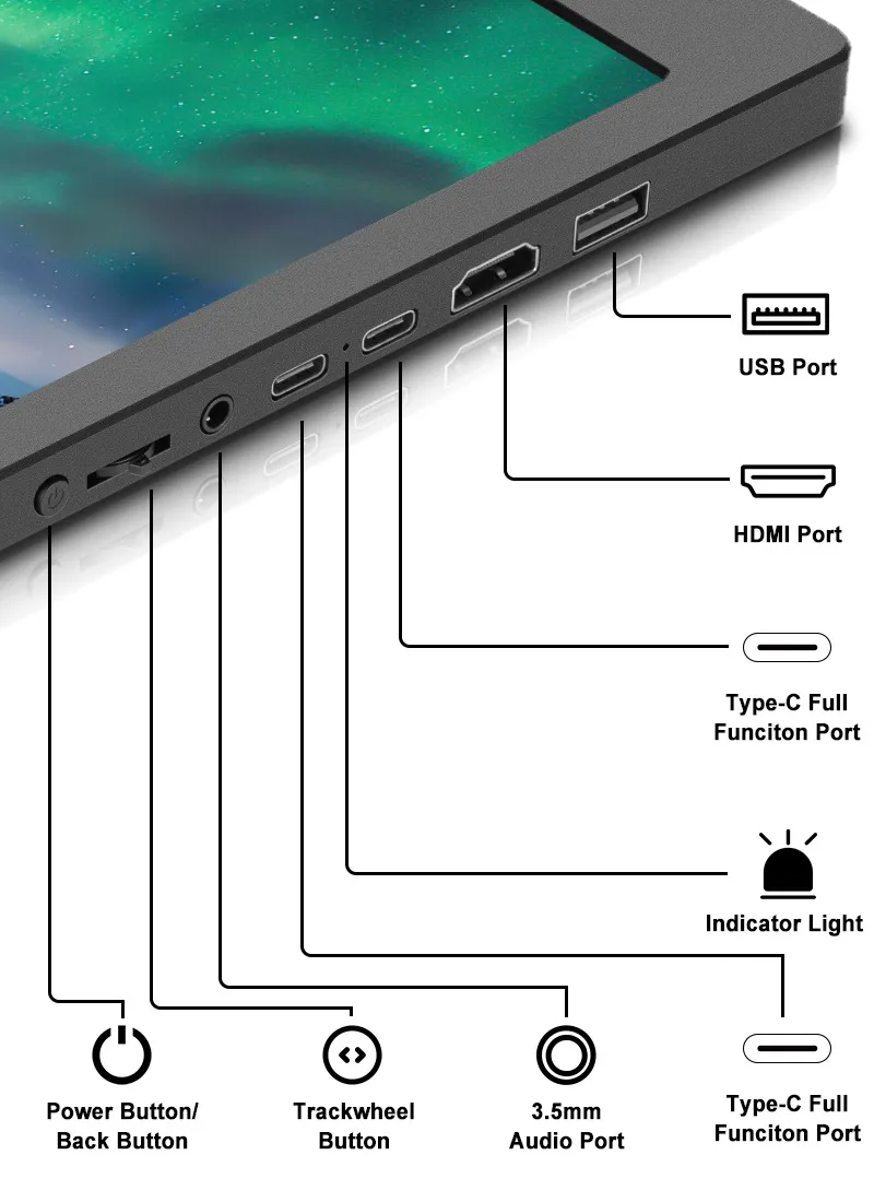 Extended screen X 1,HDMI cable X 1,Type-C cable X2,USB-A to C cable, manual X 1