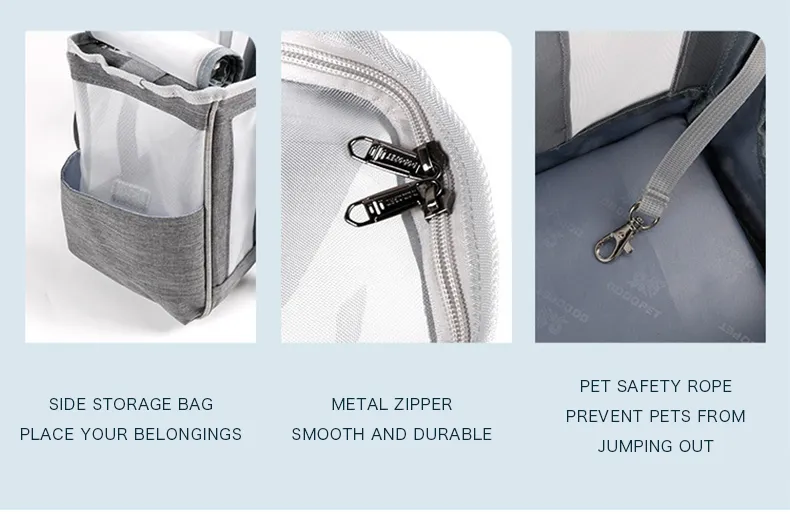 Safety Features: Includes a secure zipper closure and a built-in safety leash hook to prevent your pet from jumping out or