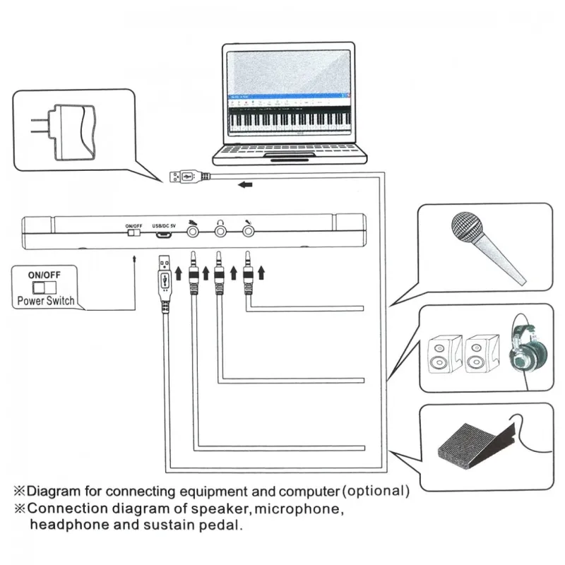 - Convenient Charging: Easily charge the piano via USB for quick and convenient recharging.