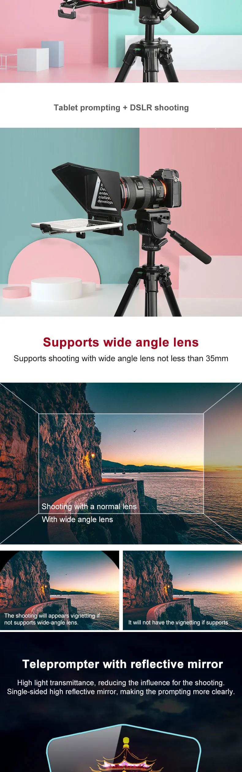 Enhance your video recording and presentation skills with the Portable Small Cell Phone Teleprompter. Designed for content creators, educators, and professionals, this compact teleprompter allows you to deliver your message with confidence and clarity. Its lightweight, foldable design makes it incredibly easy to transport, making it perfect for on-the-go shooting or use in various locations. Whether you're filming YouTube videos, conducting interviews, or giving presentations, this teleprompter ensures you stay on script without losing eye contact with your audience.