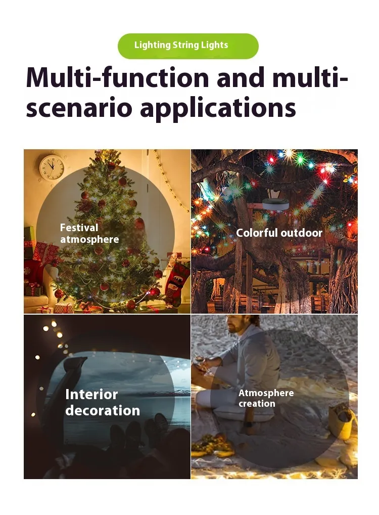 In addition to its decorative role, the string light can also serve as a practical lighting solution during power interruptions, outdoor work, or low-light situations. Its versatility allows it to transition seamlessly between decorative, functional, and emergency use.