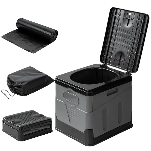 Enjoy stress-free outdoor adventures with this portable toilet designed for car trips, camping, boating, hiking, and emergency situations. Compact yet sturdy, it gives you a clean, private and convenient toilet solution wherever you are—no more hunting for public restrooms or worrying about remote locations. With its foldable design, secure lid, included carry bag and trash bags, it’s easy to pack, set up and use on the go.