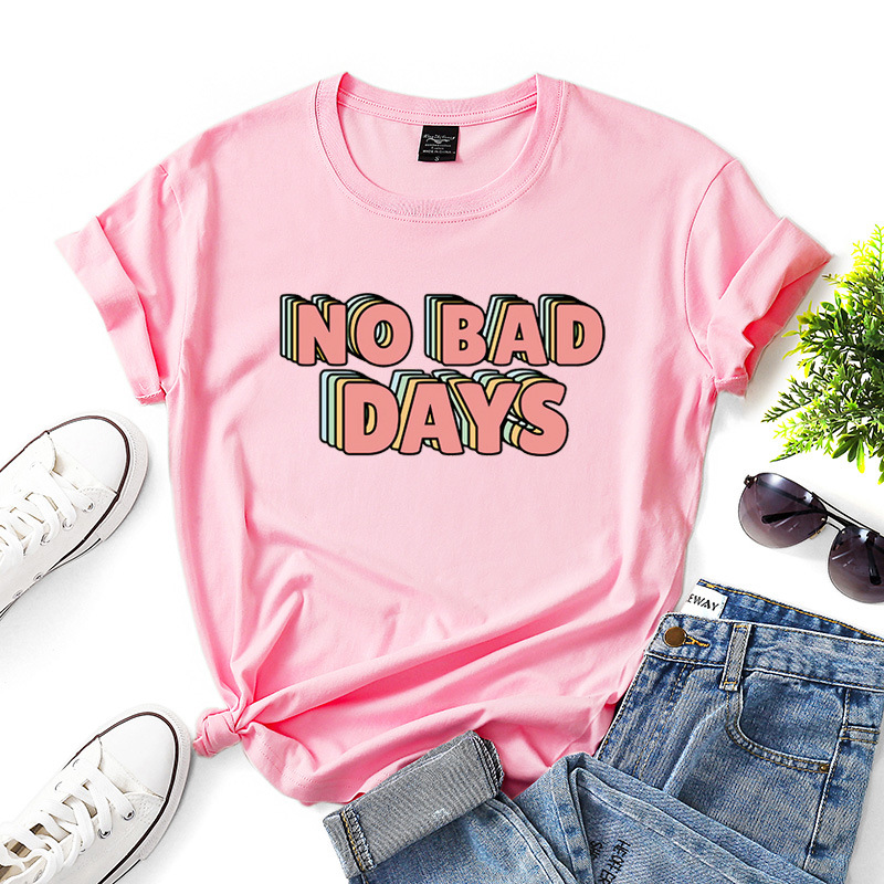 casual day out. The bold, eye-catching print "NO BAD DAYS" serves as a fun reminder to embrace every moment with optimism.