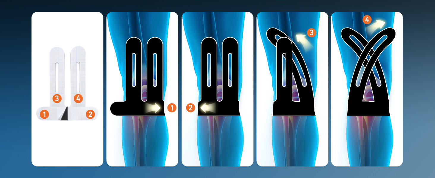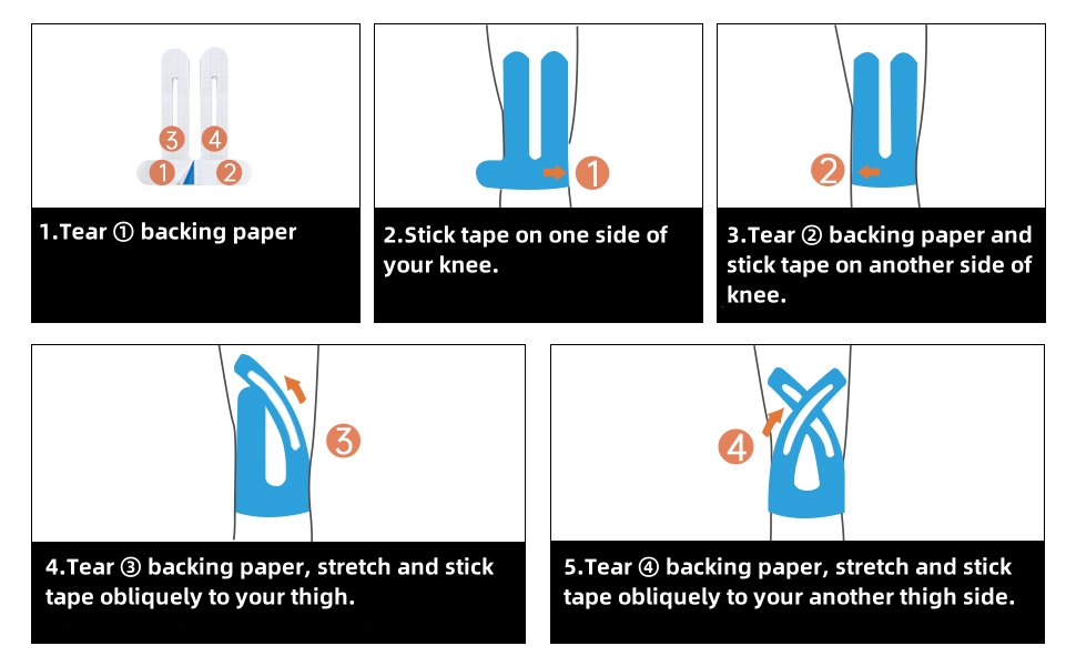 Apply the Tape: Remove the backing from the pre-cut strip and apply it to the knee area, following the natural contours.