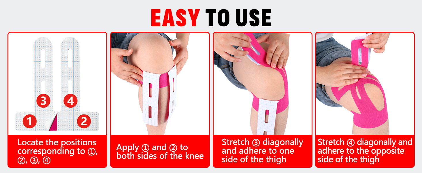Unique Pre-Cut Design: Our pre-cut kinesiology knee tape are specially produced for use in knee, so tape fits your knee tightly. You can get most knee support & protection when active.