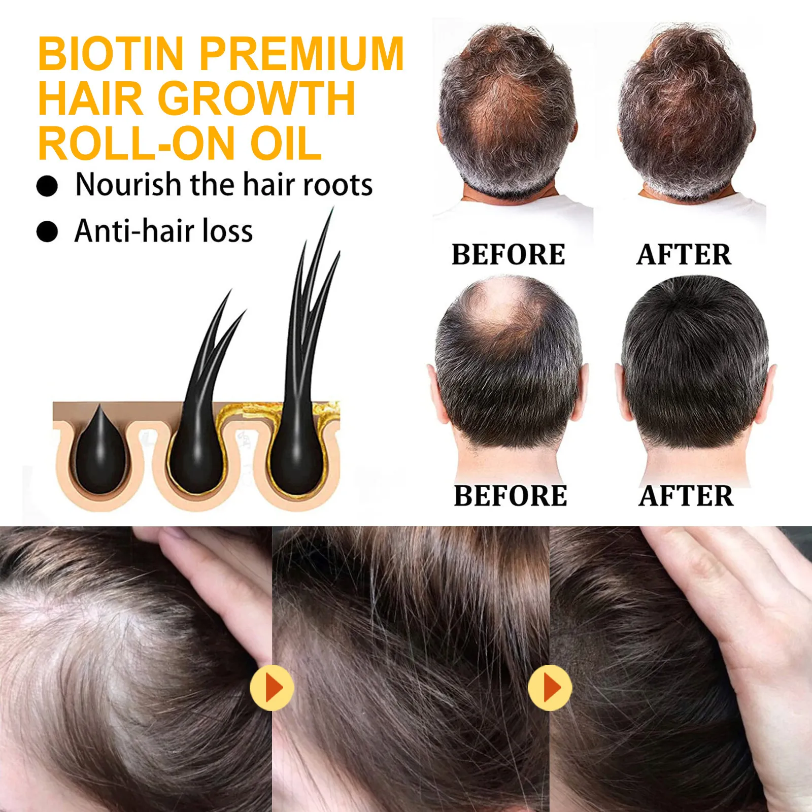 Long-term use of the Premium Hair Growth Serum promotes better hair texture, improved elasticity, and overall hair strength. By nourishing and stimulating the scalp, it helps to create the ideal environment for healthy hair growth, reducing breakage and thinning.