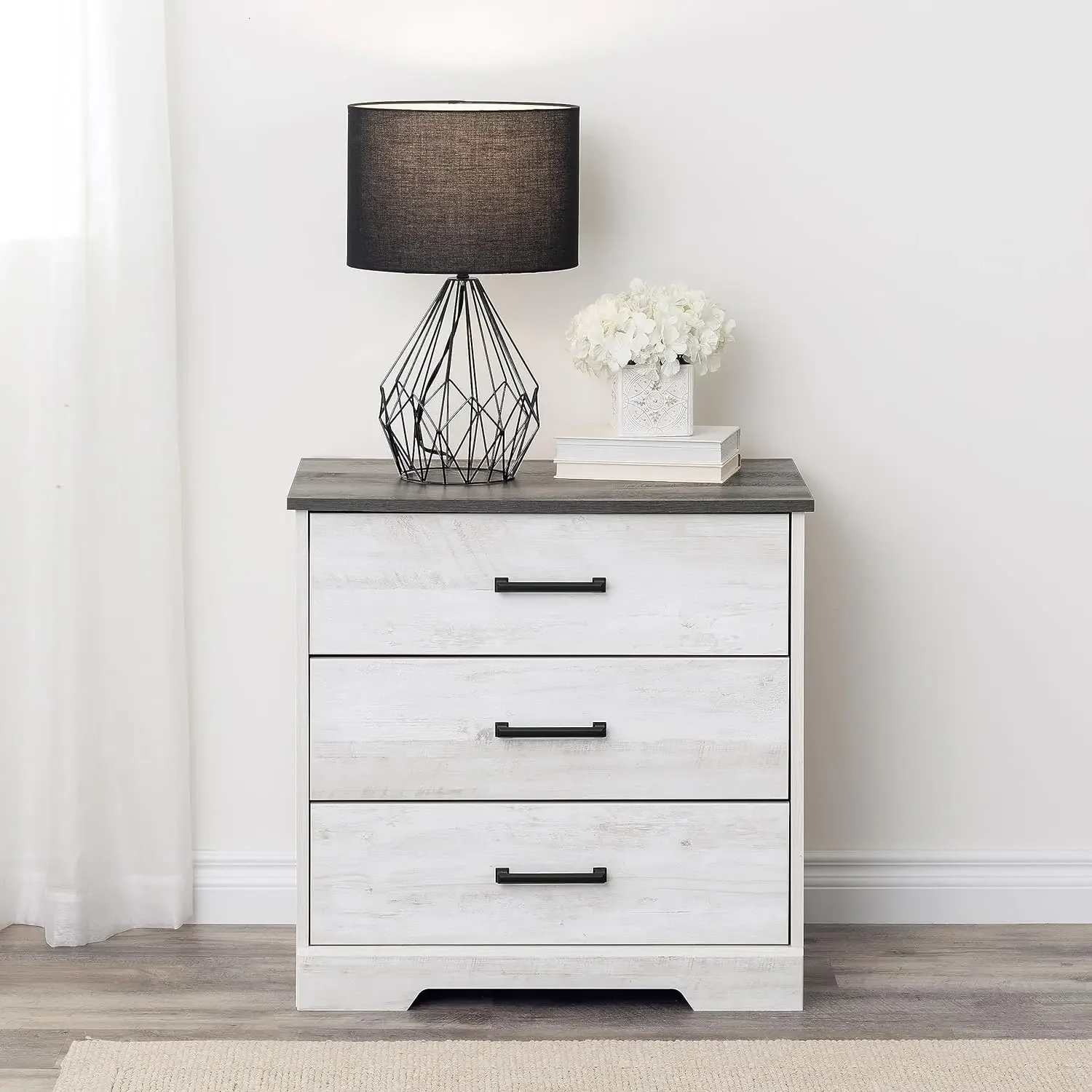 Prepac Rustic Ridge Farmhouse 3-Drawer Nightstand, Washed White, ADNR-1603-1