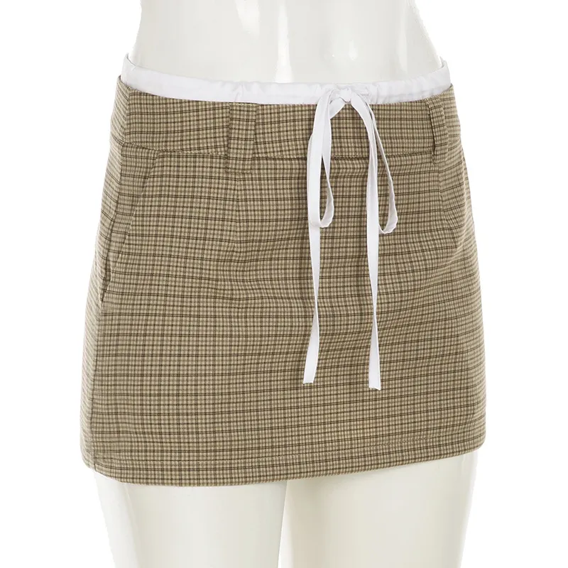 This detail not only enhances the skirt's style but also provides a flattering, figure-enhancing look. The lace-up feature complements the preppy aesthetic by adding a touch of modernity to a classic design, making it the perfect blend of timeless and contemporary style.