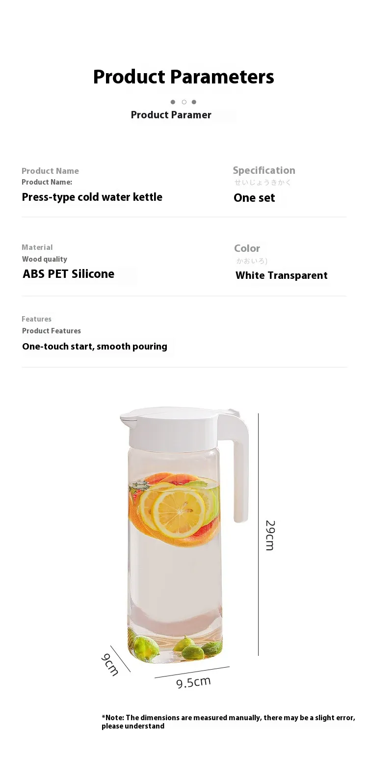 Product Description for Press Type Plastic Cold Water Jug – Large Capacity Fruit Juice Tea Drinking Cup