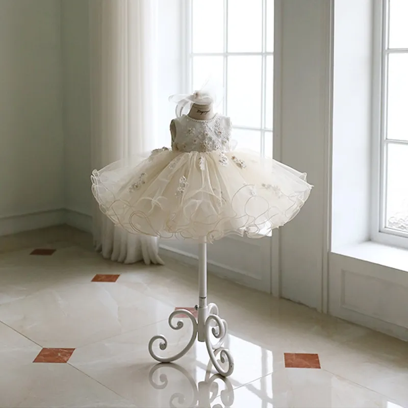 This dress is a perfect choice for flower girls at weddings, making your little one look like a miniature bride in the most charming way. It’s also suitable for other formal events such as baptisms, birthdays, or even holiday parties. The combination of lace, tulle, and a full skirt gives this dress a romantic and magical appeal, making it an unforgettable part of any special occasion.