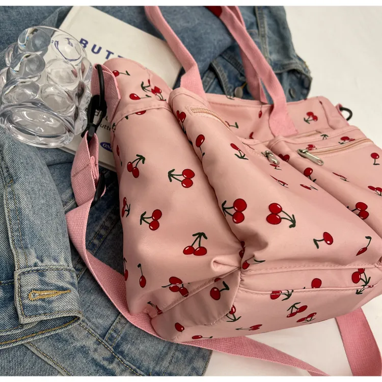 This bag is more than just an accessory—it's a fun, expressive way to enhance your personal style. Whether you're running errands, attending a casual gathering, or simply enjoying a sunny day, this bag combines fashion with functionality. Its charming cherry print and practical features make it an ideal choice for women who want a bag that's as cute as it is useful.