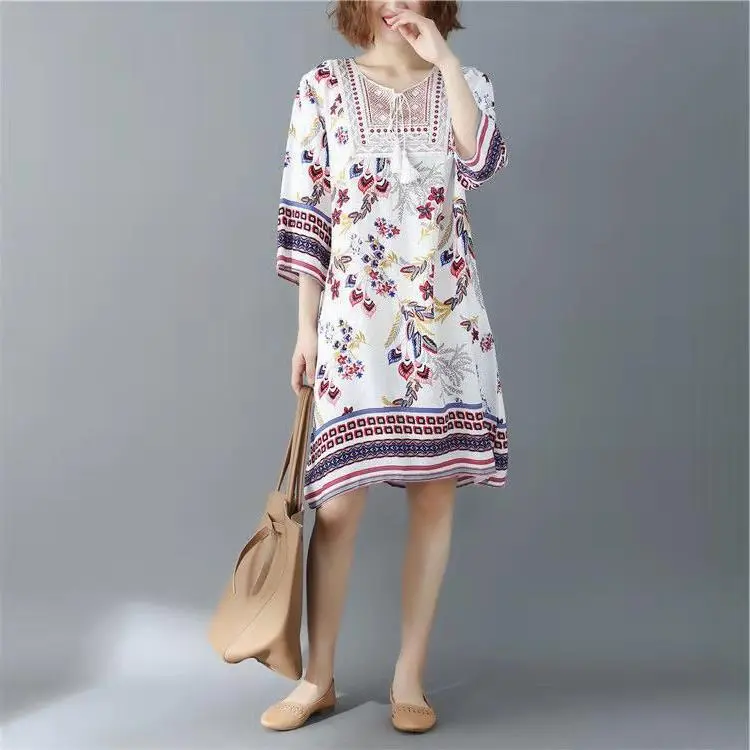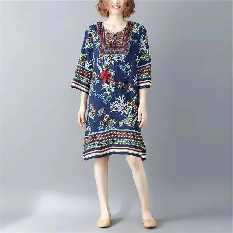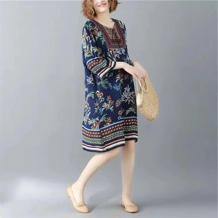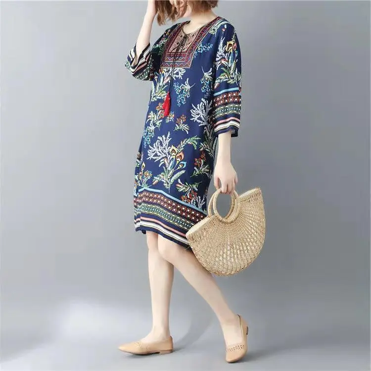 Printed Round Neck Beach Dress Women