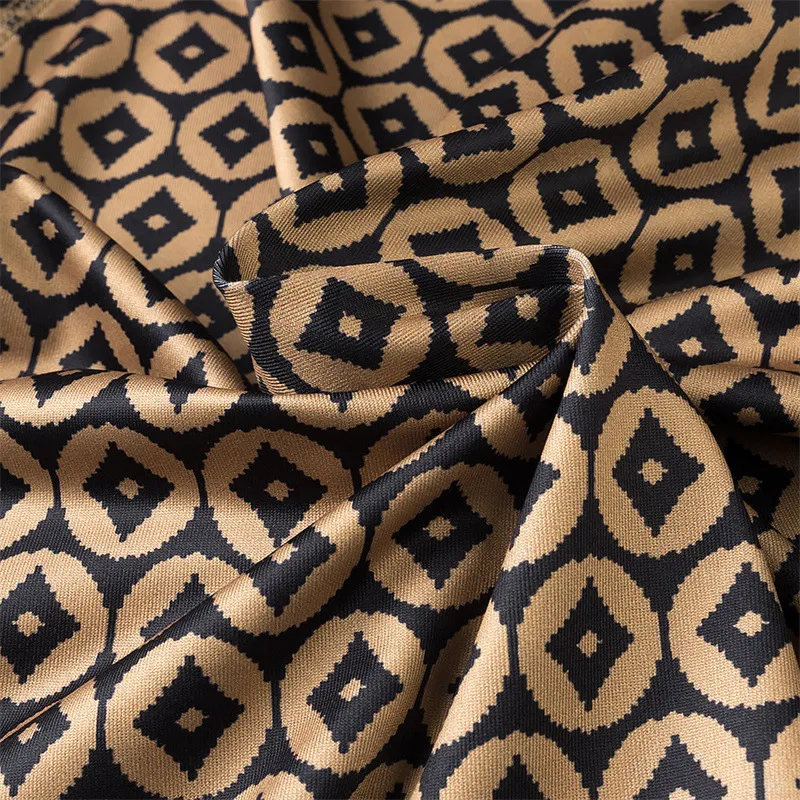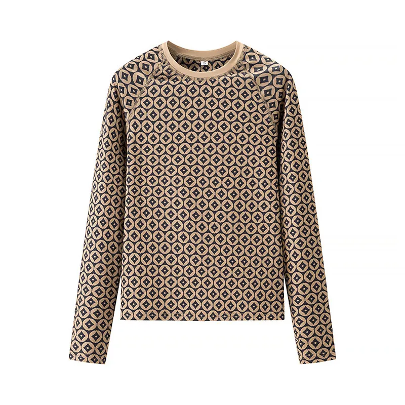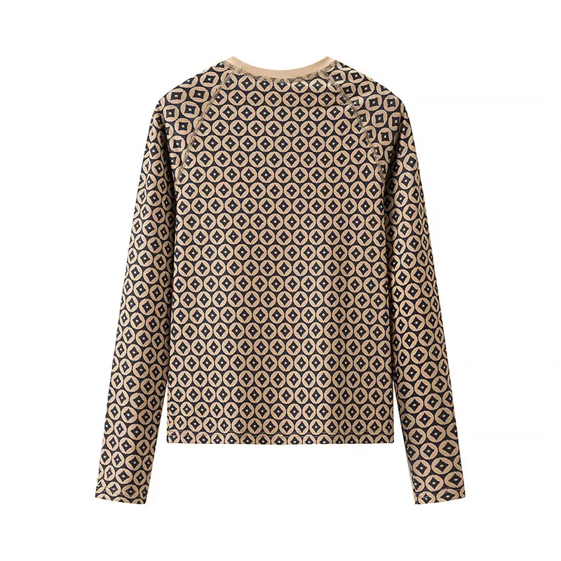 Printed Sexy Stretch Long Sleeve Round Neck Top and Trousers Suit – Bold, Comfortable, and Confident