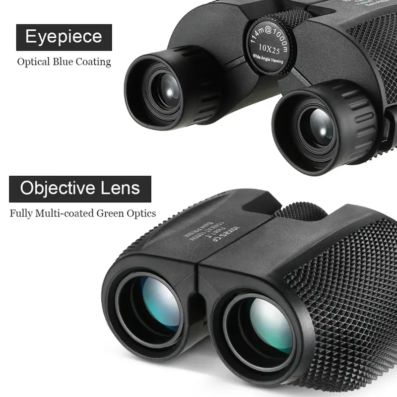Professional Binoculars, 10x25 BAK4 Prism, High Powered Binocular, Portable Hunting Telescope