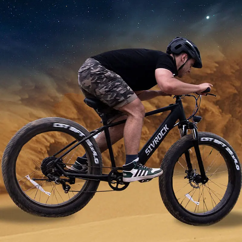 The 7-speed gear on the rear hub of this electric mountain bike meets your multiple-speed needs, combined with the 26" x 4.0 fat tires, giving the electric bike perfect terrain adaptability to conquer complex terrain and roads.