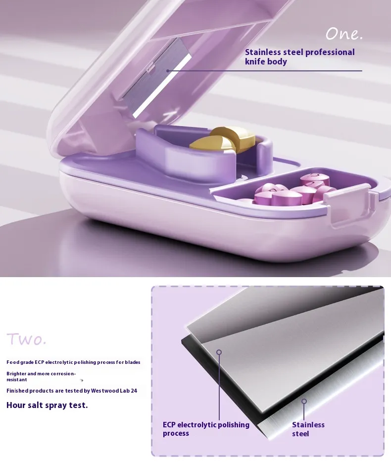 The Professional Mini Medicine Cutting and Storage Box is an essential tool for anyone who needs to manage their medication on the go. This compact, multifunctional device combines the convenience of a pill cutter with a secure storage compartment, making it the perfect solution for travel or everyday use.