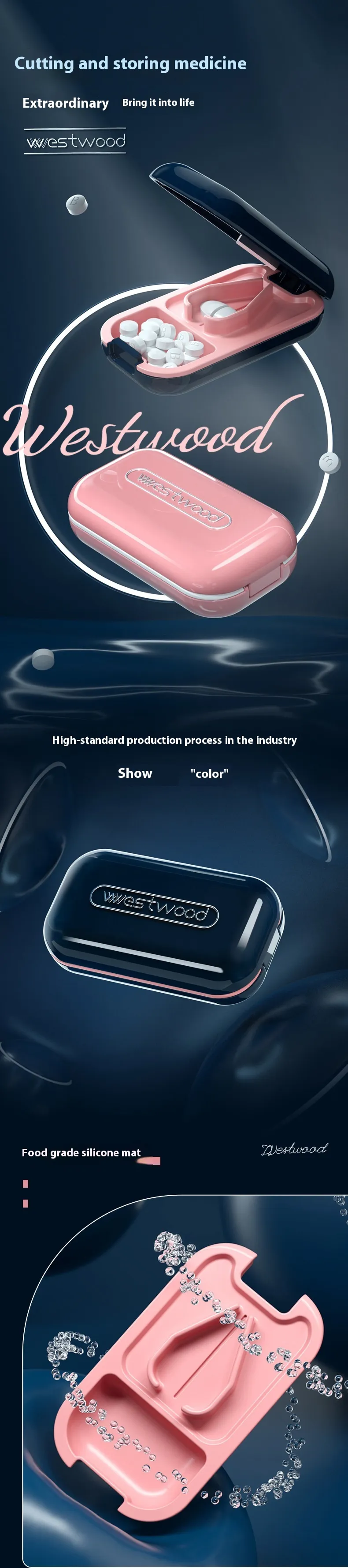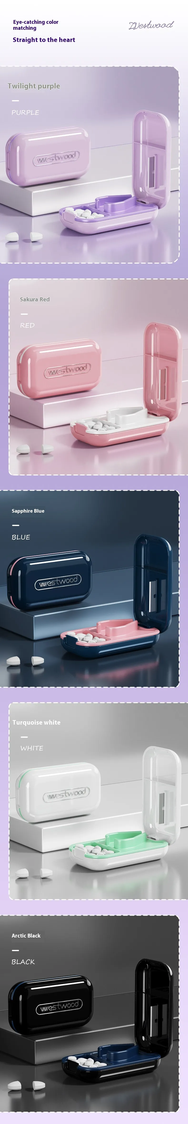 - 【High Quality】The tablet splitter not only works well, it also looks chic. The pill cutters are made from food safe polypropylene materials, BPA free and durable. The mini pill grinder is waterproof, so that the pills inside will not get wet.