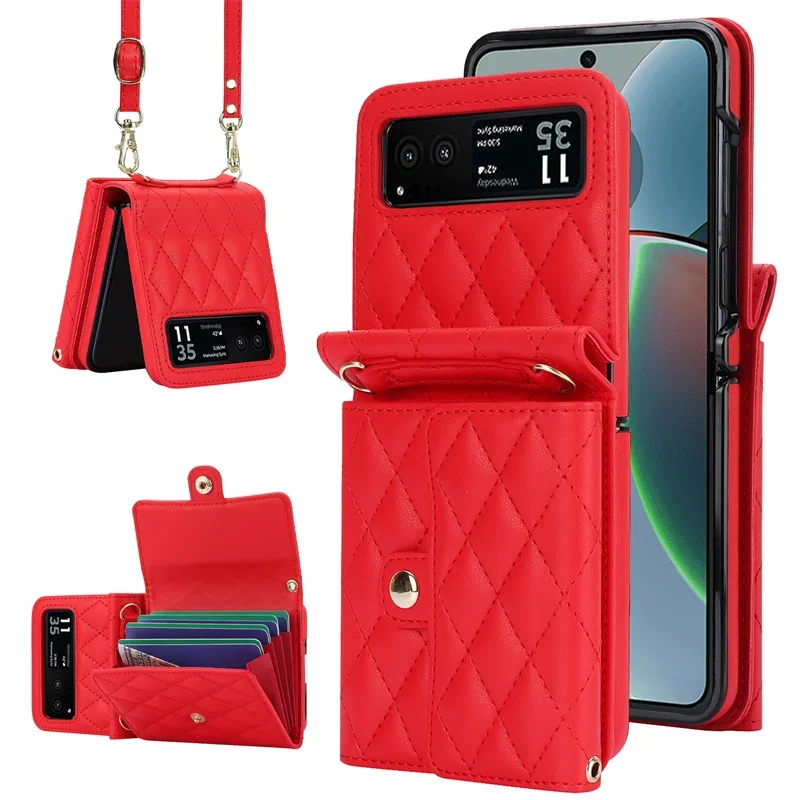 For Motorola Razr 40 Case PU Leather Crossbody Lanyard Holder Magnetic Snap Wallet Phone Cover For Motorola Moto Razr 40 Razr40