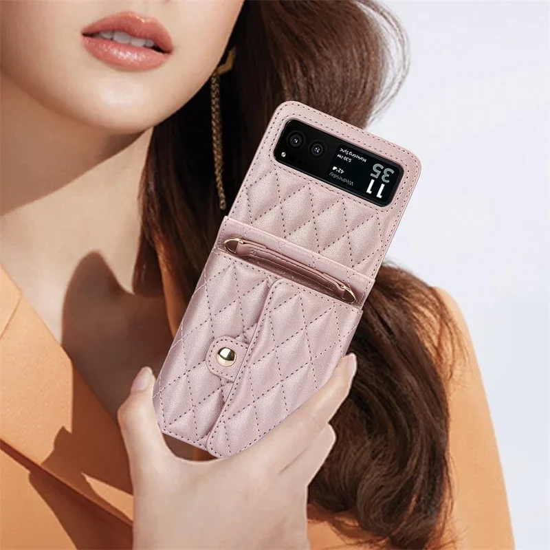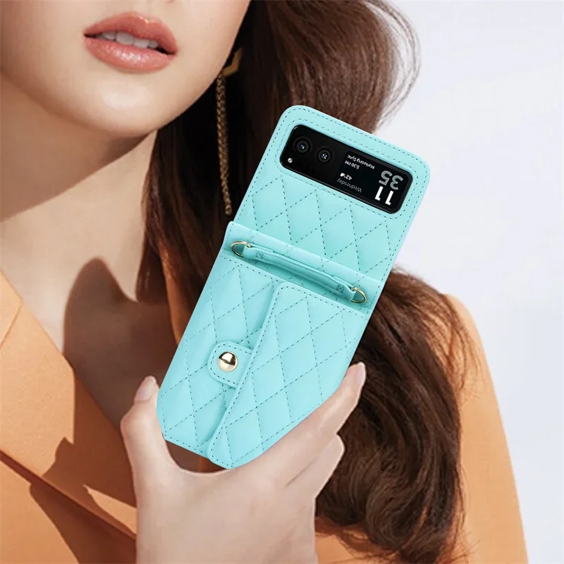 This PU leather case is designed specifically for the Motorola Razr 40 and Razr 40 Ultra. It features a crossbody lanyard for easy carrying and a magnetic snap wallet for secure storage. The stylish and functional design ensures that your phone is protected while providing convenient access to essentials.