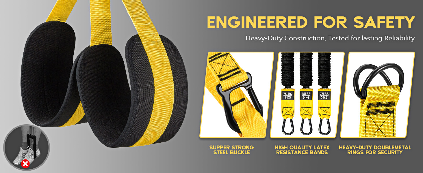 Forget flimsy bands and sketchy setups. With reinforced steel buckles, padded sling straps, and cloth-covered latex tubing, this system is