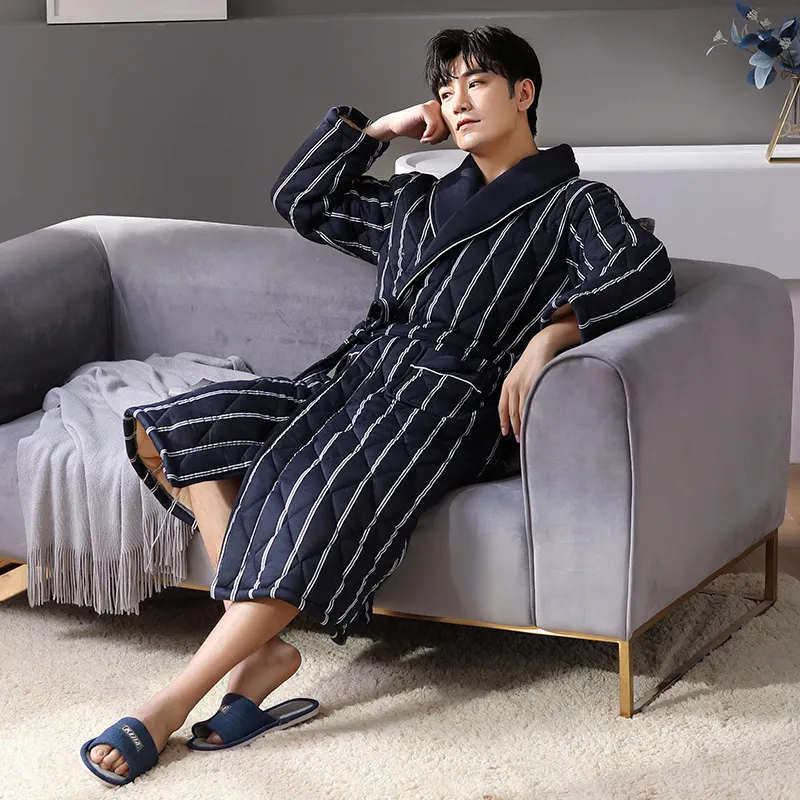 Opting for the Pure Cotton Long-Sleeved Autumn and Winter Thin Quilted Bathrobe means choosing a product that combines luxury with practicality. Its high-quality fabric and thoughtful design ensure that you not only feel comfortable but also look stylish. Whether you're unwinding after a long day or enjoying a quiet evening at home, this bathrobe provides the perfect blend of warmth, comfort, and elegance.
